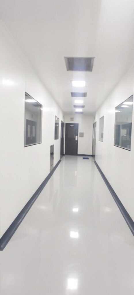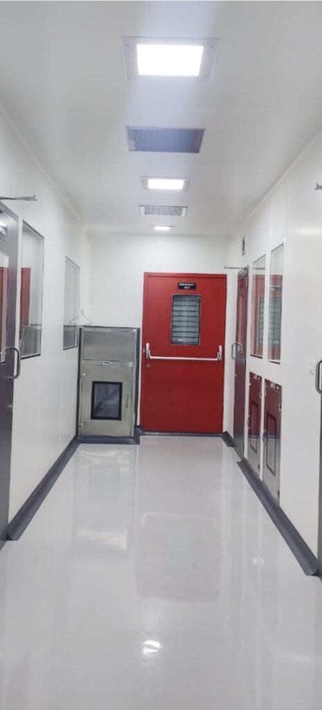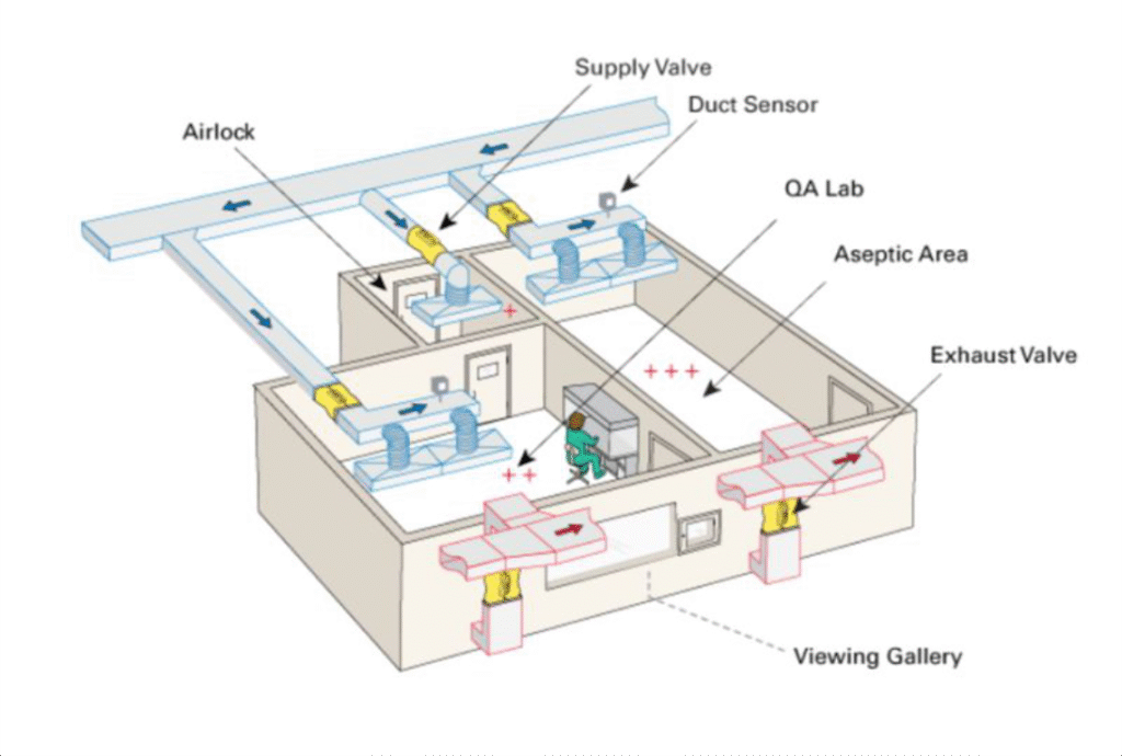 A room in which concentration of airborne particles is controlled and which is constructed and used in a manner to minimize the introduction, generation and retention of particles and microbes inside the room and in which other relevant parameters, e.g. temperature, humidity and pressure are controlled as necessary